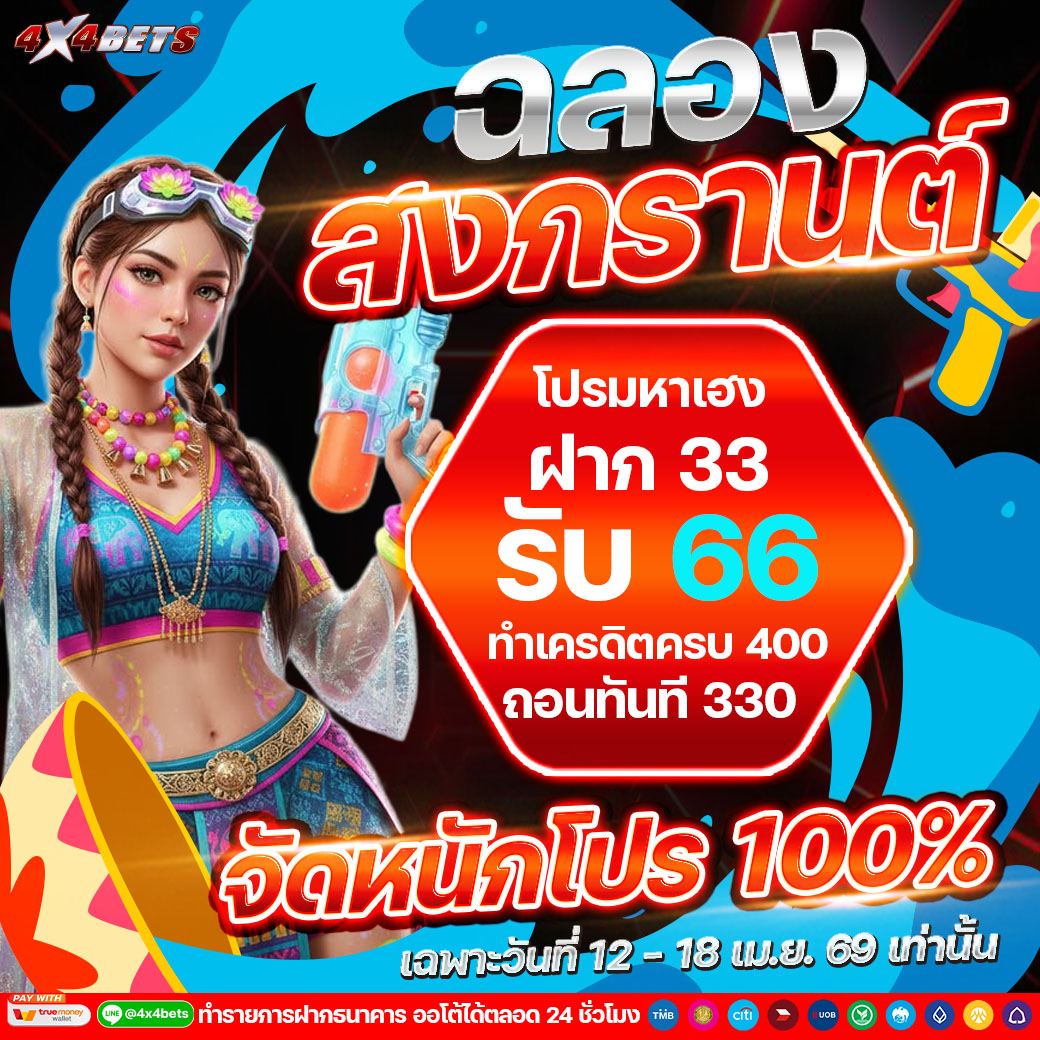 🔫สงกรานต์นี้มีหนาว! 4X4BETS จัดให้ฉ่ำๆ โปร 33 รับ 66 💦
