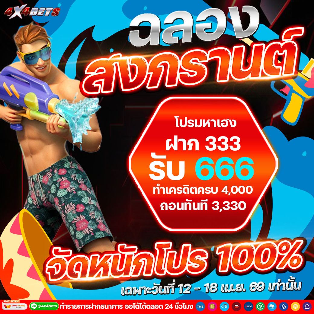 🔫สงกรานต์นี้มีหนาว! 4X4BETS จัดให้ฉ่ำๆ โปร 333 รับ 666 💦